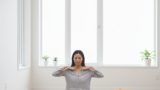 - 「首と丹田の連動」: 仰向けに寝て、力を抜き切ります。首の後ろと下腹部(丹田)に意識を集中し、首を左右に小さく「コロン、コロン」と優しく転がします。首の緊張は、全身の緊張と直結しています。首と丹田を意識して緩めることで、しあわせのエネルギーがスムーズに流れる「中庸(ちゅうよう)」の状態へ導かれます。